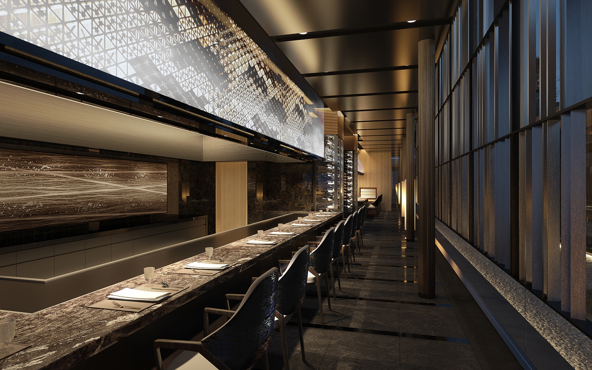 磨き上げられた石造りのカウンター正面には、