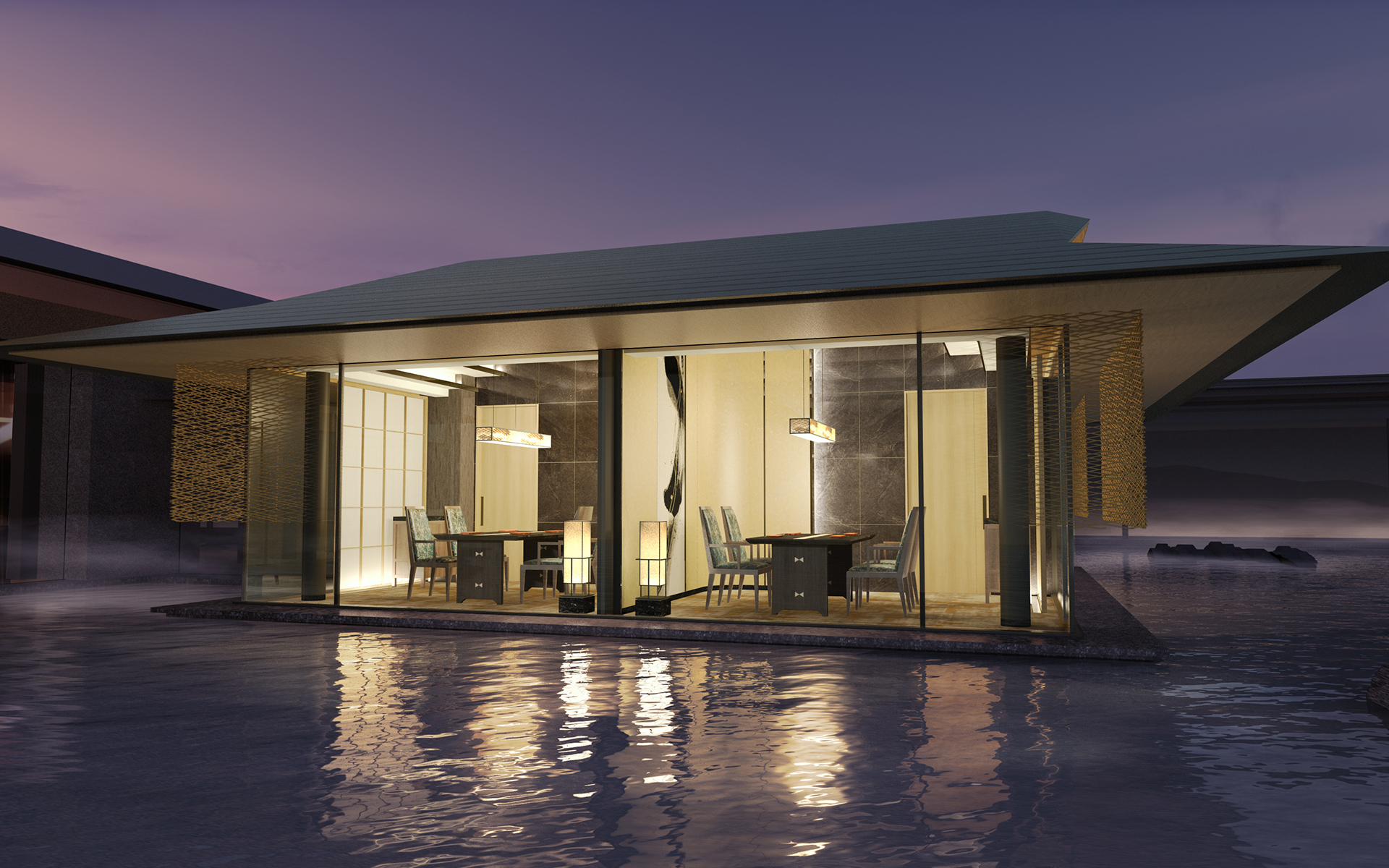 水に浮かぶように配された特別個室。